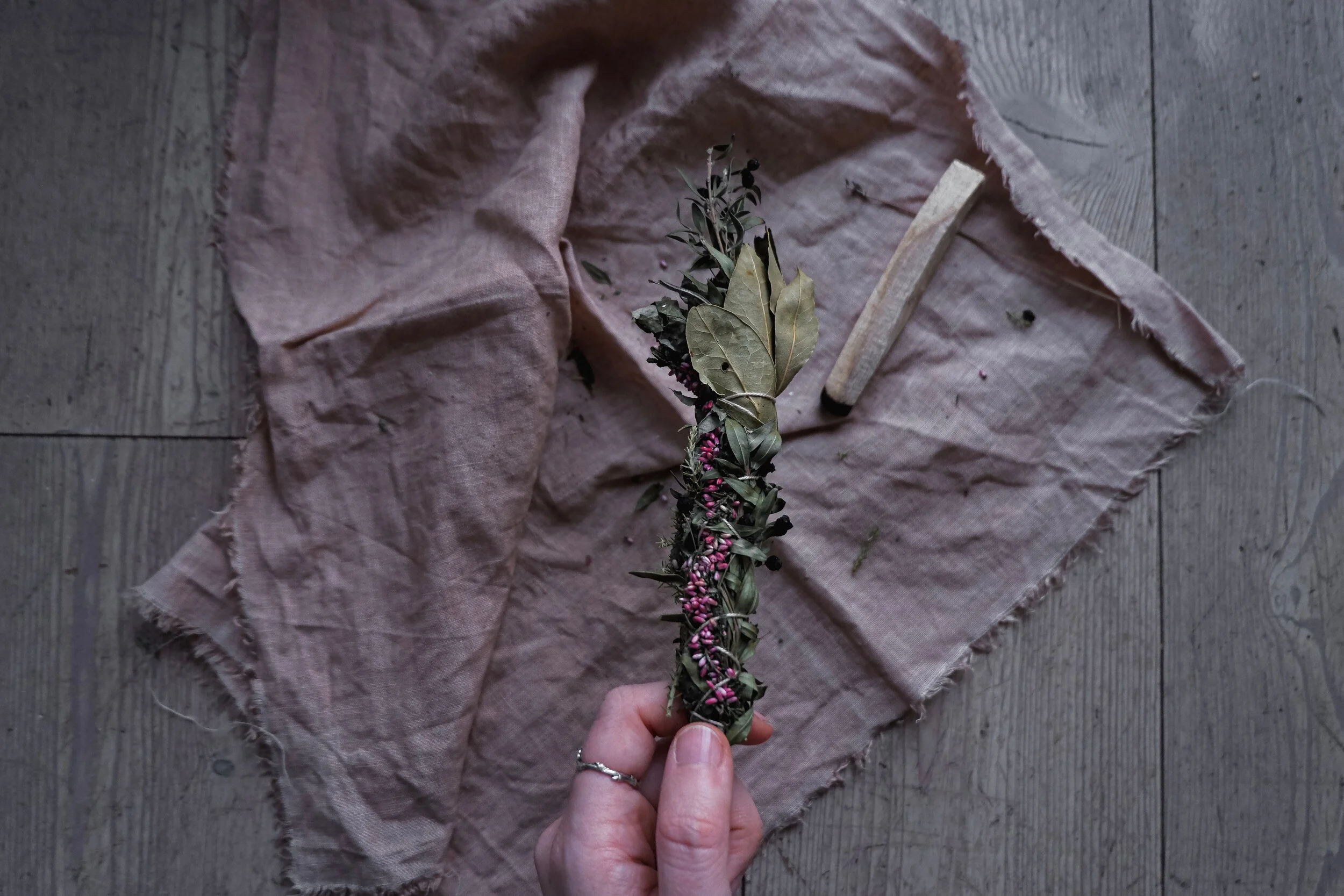Notice the smoke as it curls, speak into the smoke all that you are grateful for, and then repeating into the smoke all that you wish to let go of.